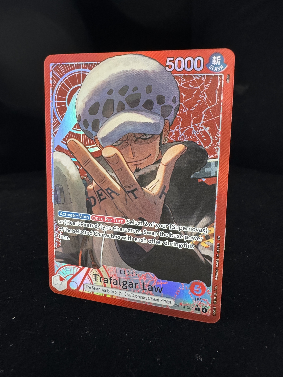 [Activate:Main] [Once Per Turn] Select 2 of your {Supernovas} or {Heart Pirates} type Characters. Swap the base power of the selected Characters with each other during this turn.